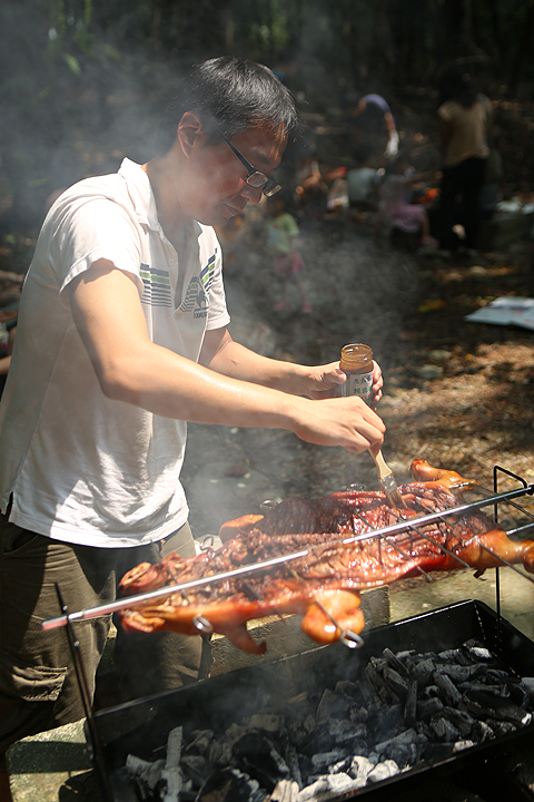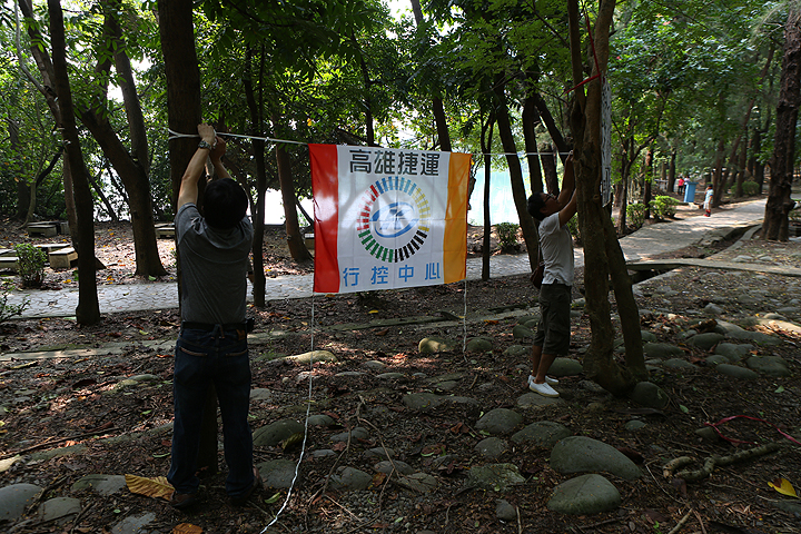 2.來到澄清湖烤肉區,當然要先掛上牌子,卡位宣示主權啦啦,彥霖真是好身手啊!!