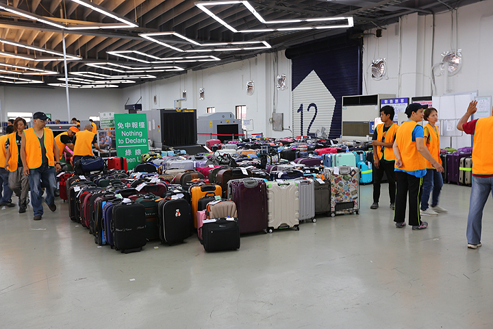而領取完所有行李後,在離開大樓前,會再X光掃描行李一次