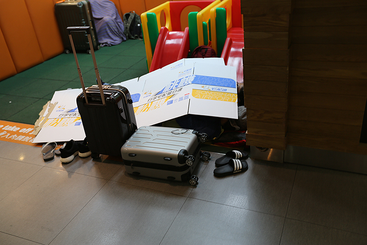 因為很多識途老馬都已經佔好位子睡成一片了!後來陸續有人去搭機後,老王才搶到一個位子,哈! :f04
